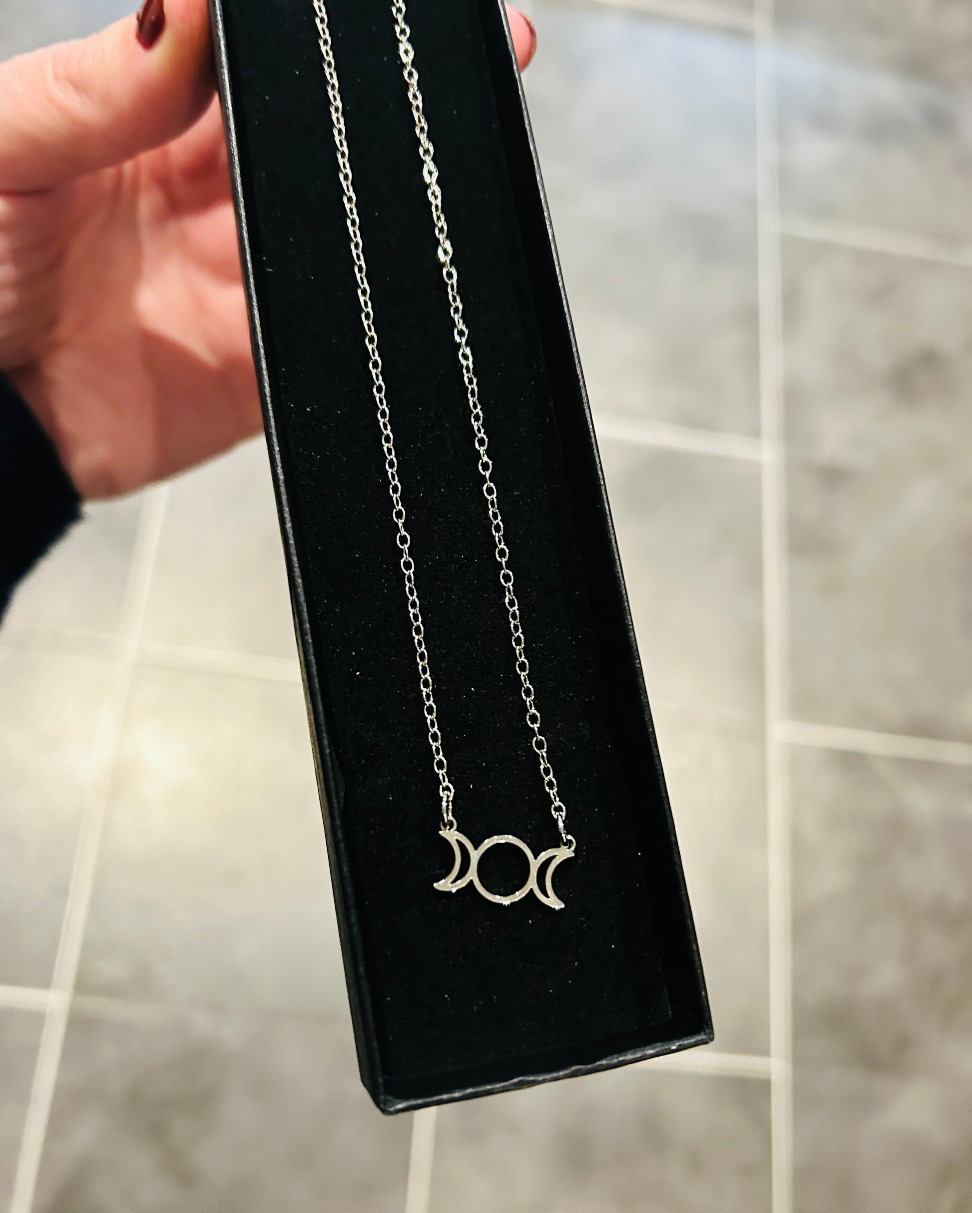 Embrace the power of the moon with this Triple Goddess necklace, representing the Maiden, Mother, and Crone—symbols of wisdom, growth, and transformation.