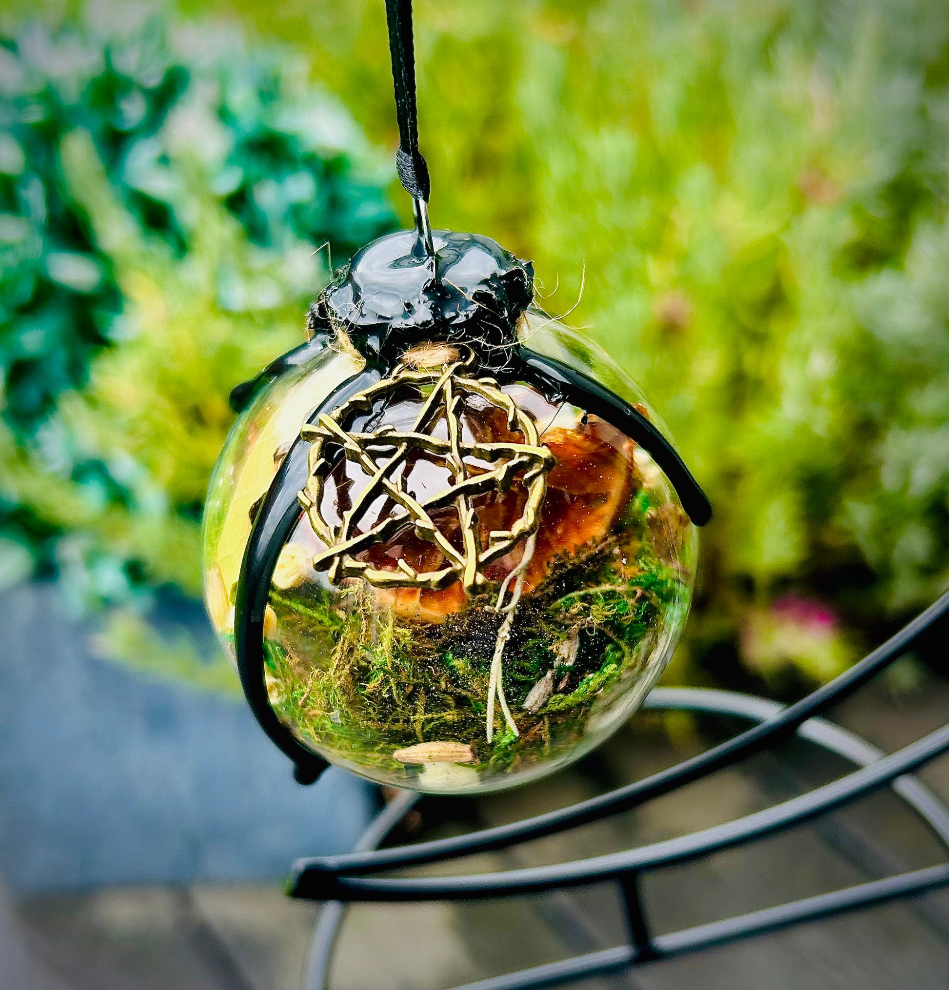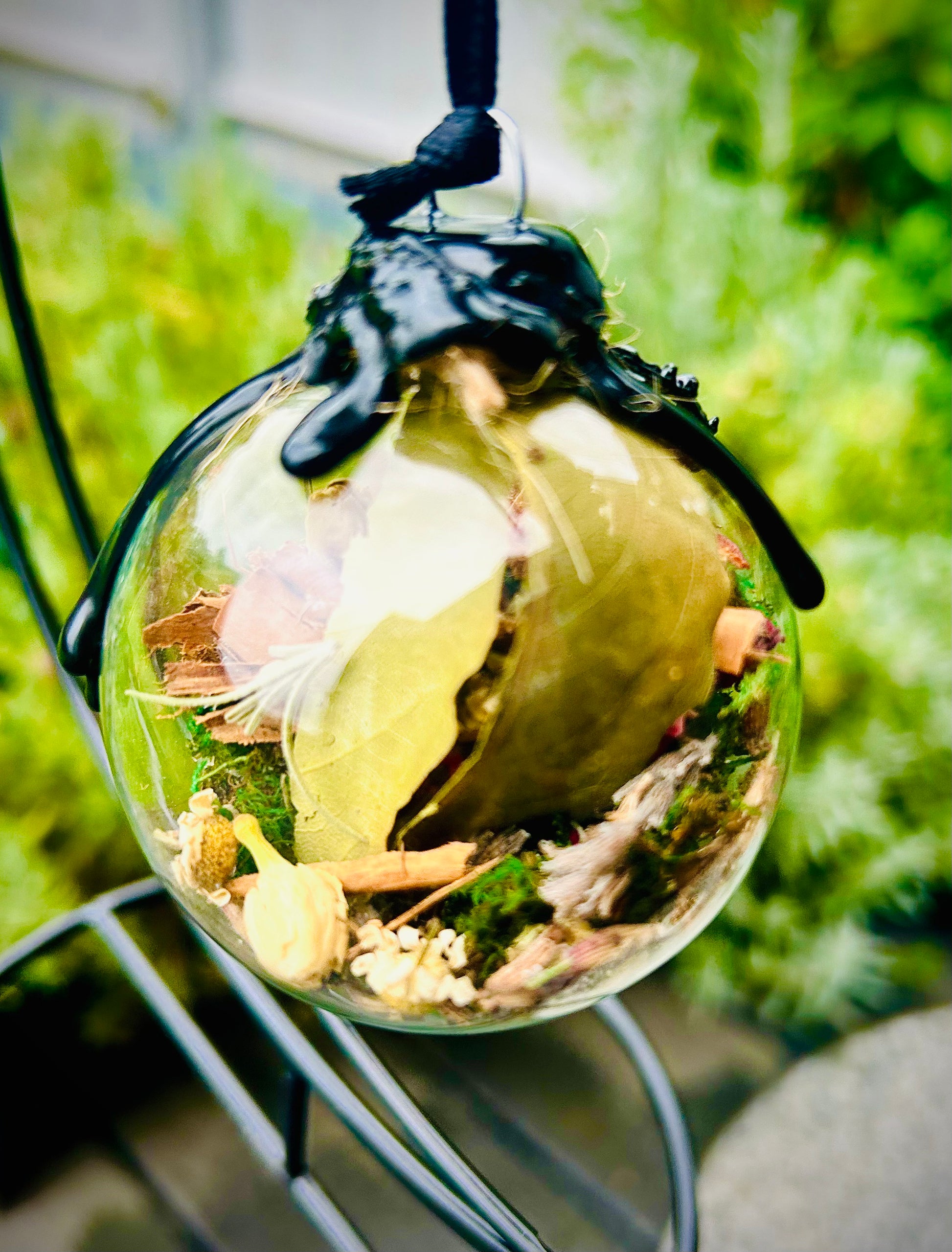 Each Witch Ball is handmade by me with positive intention, filled with protective herbs and salts, crystals, flowers, charms and sealed for protection. As each one is handmade, they are unique and no 2 are the same, but all as equally beautiful.